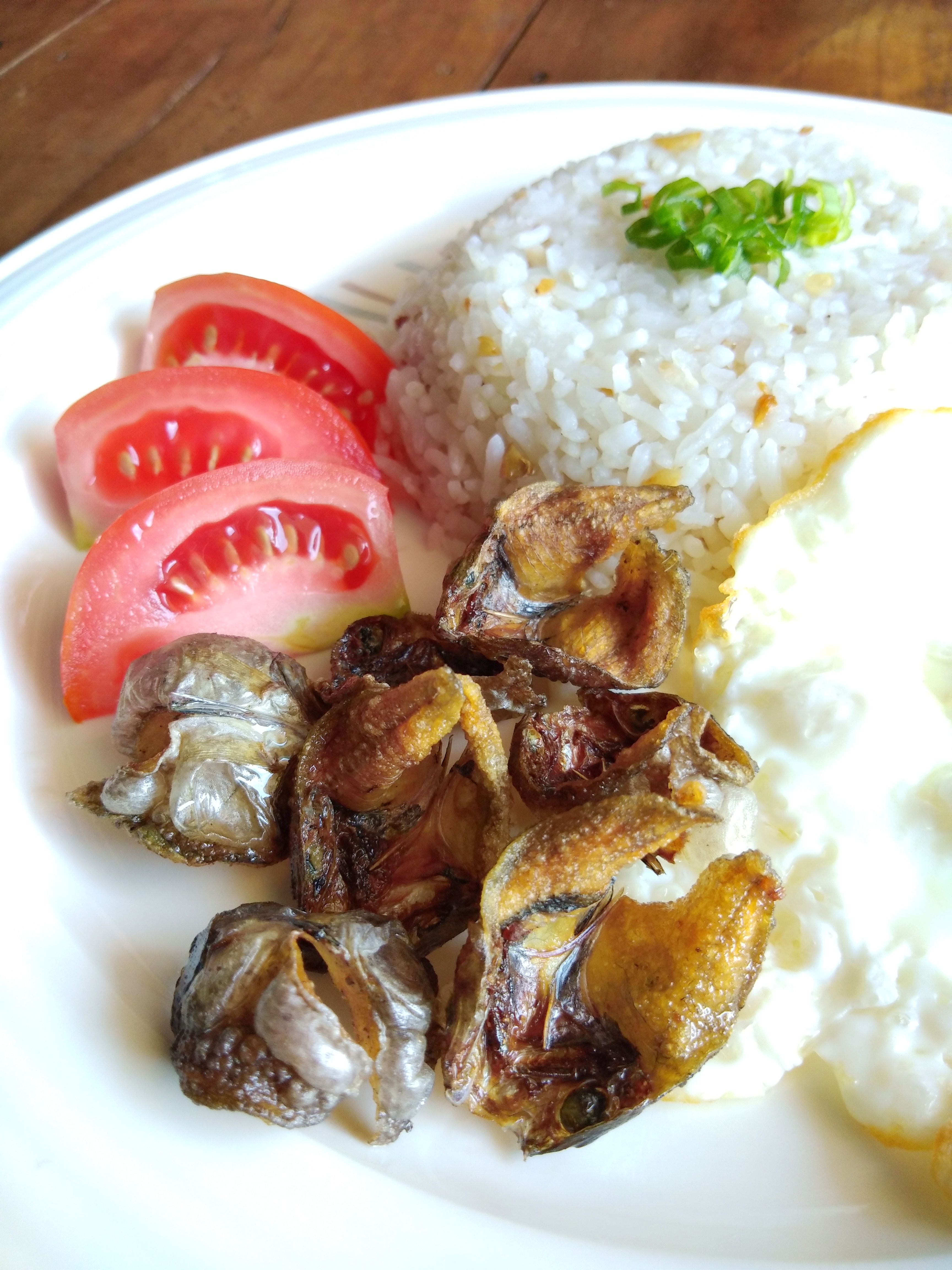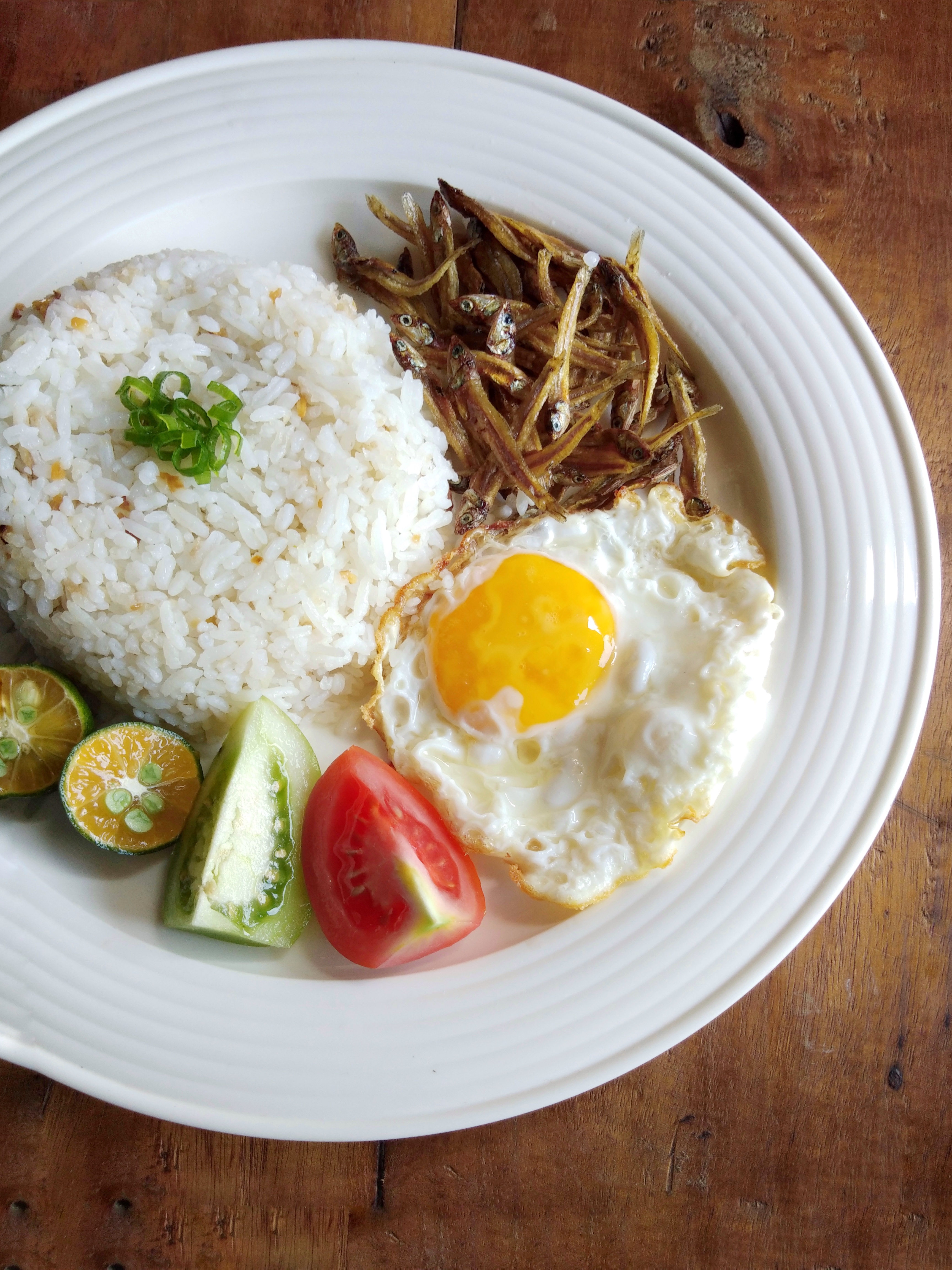 - Remove anchovies from pan and assemble in a plate with sinangag and egg.